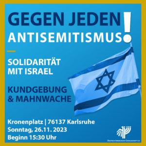 Die Kundgebung findet am 26.11.2023, mit Beginn um 15.30 Uhr statt. Ort der Kundgebung wird der Kronenplatz sein, wo verschiedene Redner:innen aus Politik und dem jüdischen Leben in Deutschland sprechen werden.